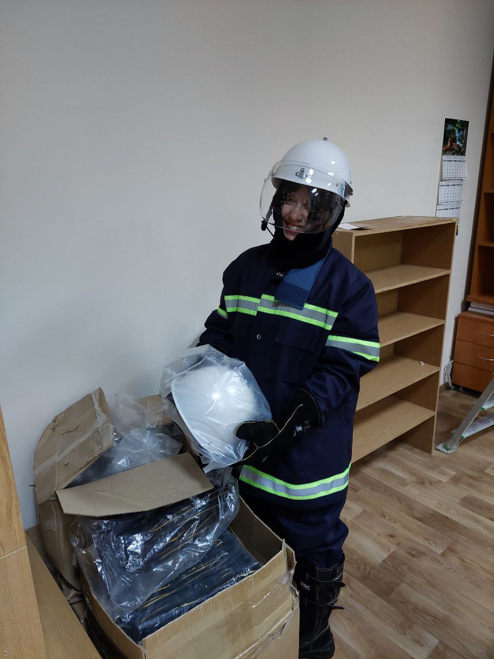 20 helmets were purchased. The helmets are designed to protect firefighters and rescuers from impacts, radiant energy and water during rescue operations and firefighting. The materials used in the manufacture of the helmet are non-toxic, and the parts that come into direct contact with the scalp do not cause pathological changes and are resistant to disinfectants. The helmet fit is provided by a system that makes it possible to correctly position it on the head and reduces the load on the head.